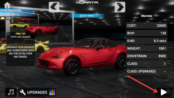 3、在车库界面点击右下角的播放按钮,查看车辆信息并进入赛事。