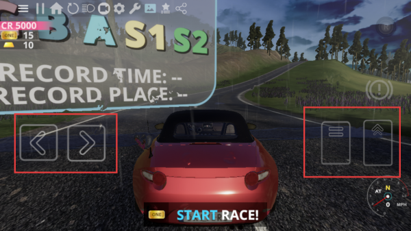 4、比赛界面中,左侧按键控制转向,右侧按键控制前进、后退。