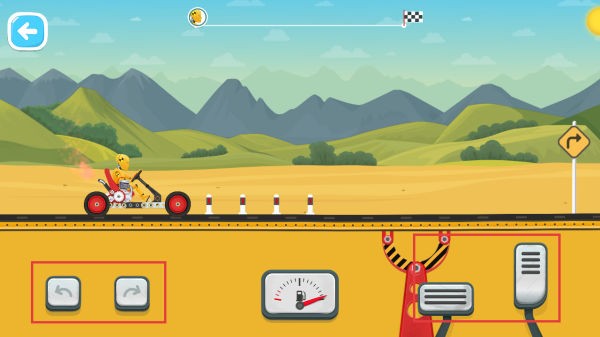 3、利用左下角的转向按钮操控车辆方向,右下角踏板控制前进、刹车。