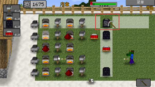 1、利用稿子挖除不要的建筑,提升对僵尸的抵御效率。