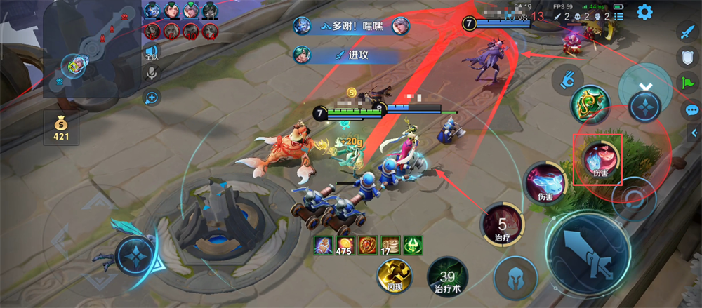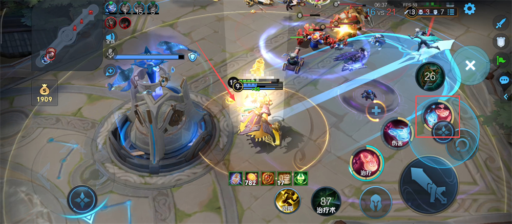1、团战结束后,若大招已经准备好,可以合理拖动施法范围,为范围内队友增加血量。