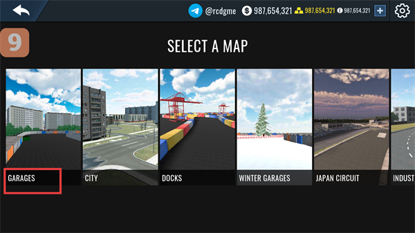 4、点击【红色框】内【GARAGES】地图,进入游戏。