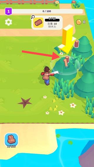 2、操控角色靠近树木,角色即可自动砍树木,直至砍完。