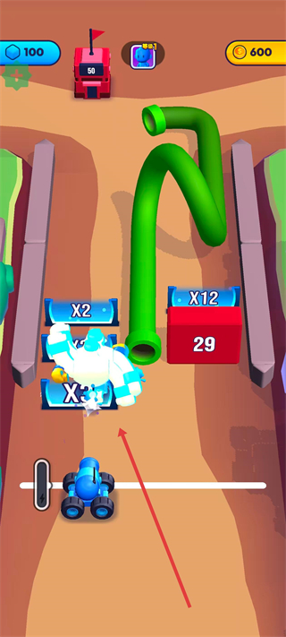 1、操控蓝色载具移动,触碰路径上的X2等增益道具。