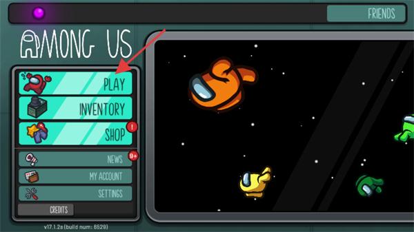 1、打开在我们之间游戏,点击界面左侧PLAY按钮,进入游戏的模式选择界面。