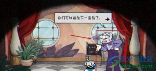 5、进入房间之后可以看到骰子人,跟骰子人对话就可以前往下一个岛屿了。