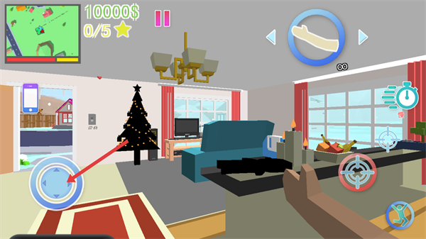 2、在场景内,通过左下角的移动按钮,控制角色在当前室内场景中移动。