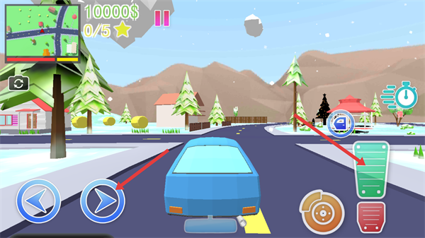 4、进入驾驶状态后,使用方向按钮操控车辆在道路上行驶。