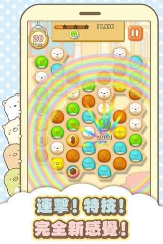 每个人都喜欢躲在角落裡~.~san-x人气角色懒懒熊的原班人马的最新创作,新出炉的可爱角色让人爱不释手!快来加入白熊、炸猪排和猫,和他们一起来玩快乐的4消游戏!拿起您的手机,体验从未见过的极度可爱的角色一起享受游戏乐趣!角落小伙伴已把谜题、奖品和礼物都包裹在美丽的裹布裡了。您随时随地都可玩这个休閒的消除游戏;不管实在地铁、猫吧、甚至于卡拉ok中都行!古怪的性格、可爱的故事以及更可爱的动画将让您一见锺情。