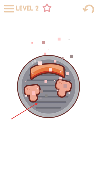 4、当【LEVEL-2】的食材完成烤制后,使用筷子工具点击该食材,执行夹取操作以完成本关卡的对应环节。