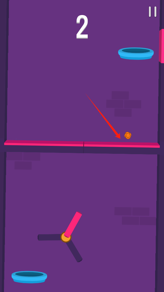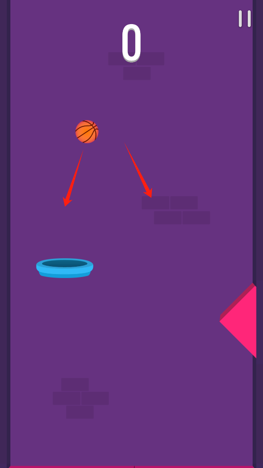 2、游戏是通过点击来让篮球在空中保持跳跃,篮球会一左一右的跳跃,需让篮球进入篮框来得分。