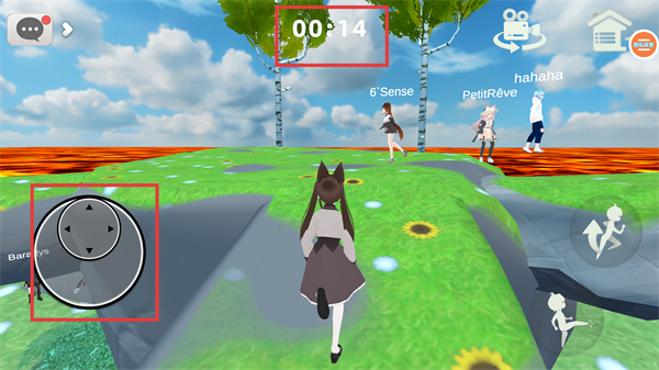 2、在游戏场景内,通过左侧方向键操控角色移动,注意上方【00:14】计时进度,推进对局。