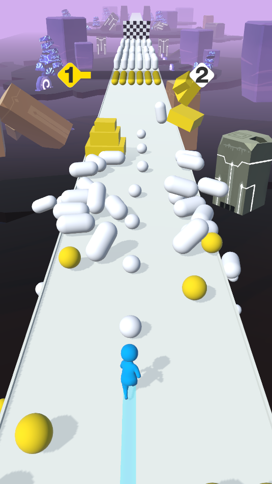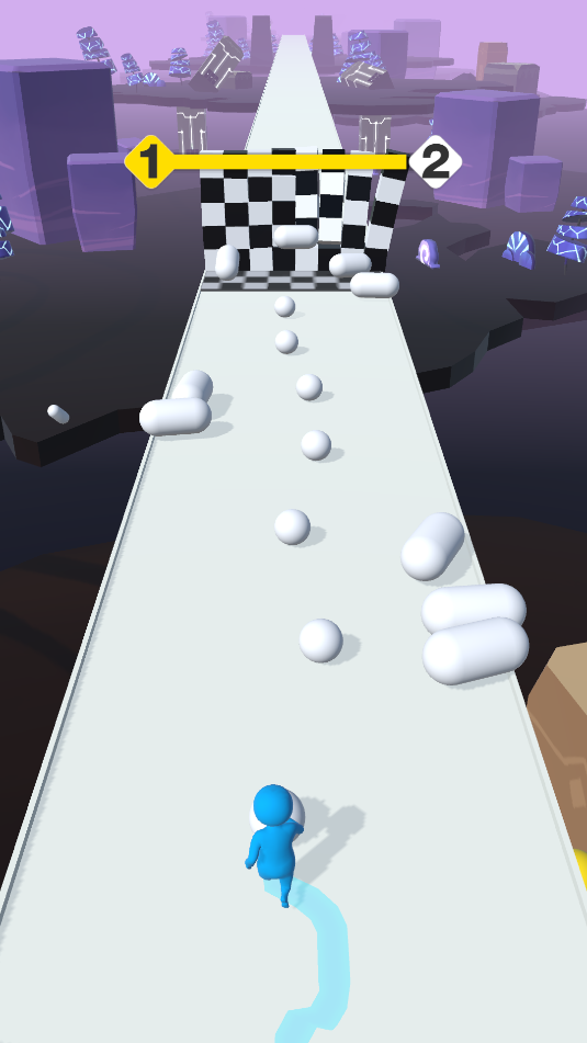 3、角色移动需注意避免触碰到打落零散的障碍物,安全到达黑白线终点线时即可通关。
