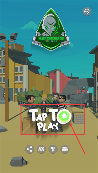 1、进入游戏后,先点击界面中的【TAP-TO-PLAY】按钮启动游戏,目标是完成【FIND-ALIEN】的任务。
