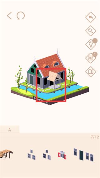 3、添加【门窗-装饰部件】,细化建筑外观,进度到【2/12】时,确认剩余部件的位置并完成拼接。