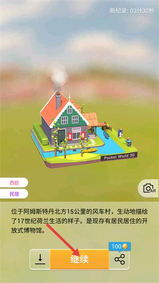 4、模型拼接完成后,点击【继续】按钮结算关卡,可获得【100】奖励,同时解锁新的模型关卡。