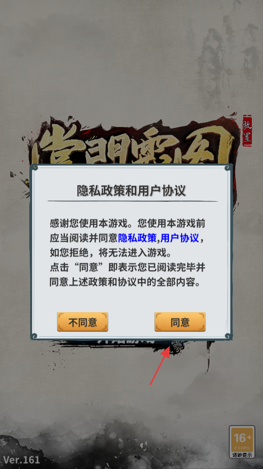 1、在隐私政策界面,点击【同意】,接受隐私政策。