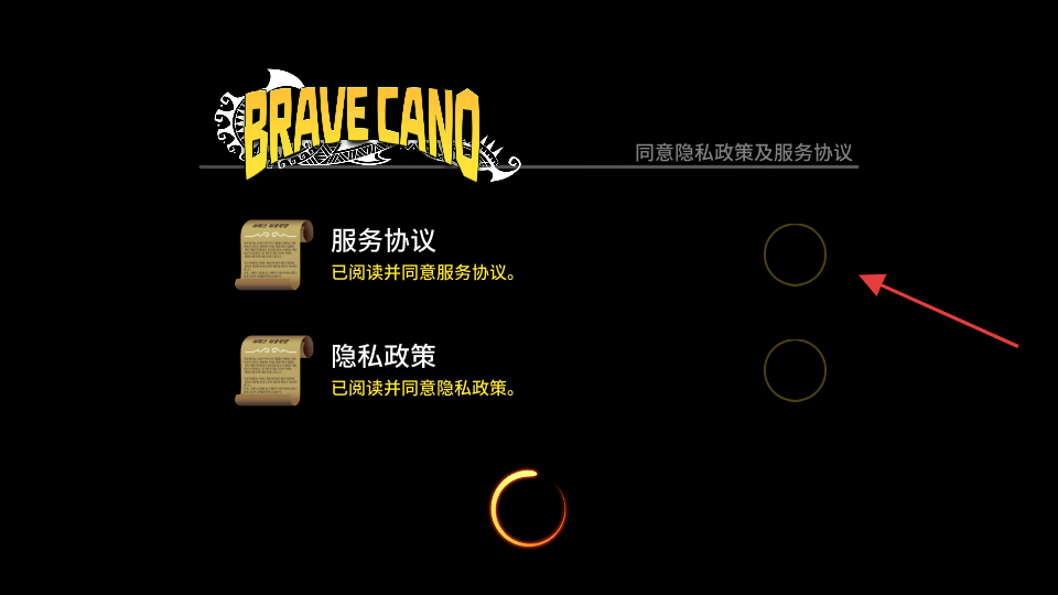 1、在游戏启动界面,勾选【服务协议】对应的圆圈,同意协议以继续游戏。