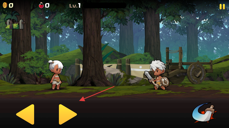 3、在游戏场景中,按箭头指示,通过点击相应按钮操控角色移动和攻击,开启游戏冒险。