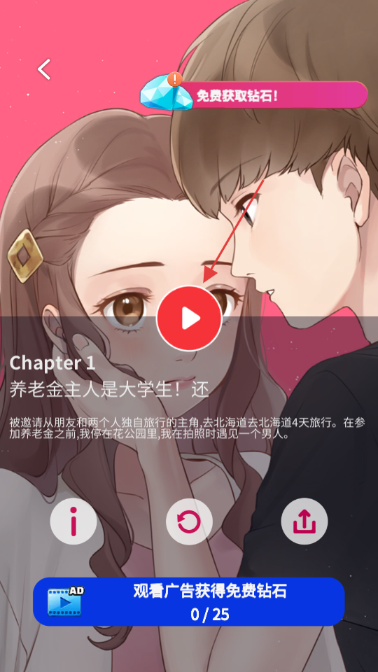 2、在剧情界面,点击播放按钮,观看【Chapter-1】剧情动画。
