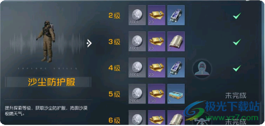 1、角色等级70级后就可以开放金色沙漠的探索拉,在这之前我们需要开启沙漠的信号塔和路牌,来获取防护服配方。