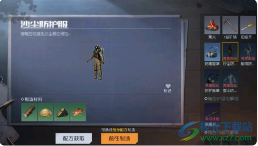 3、准备好上述两个物品,相信大家就不会在沙漠中轻易掉血了,防护服也就直接有了。