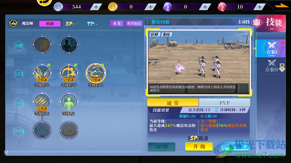 3、紫雷回旋:向前发出附带雷电的魔法回旋镖,吸附直线上的敌人并持续造成伤害。