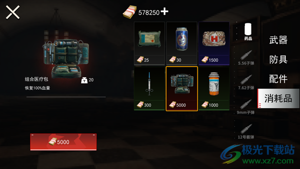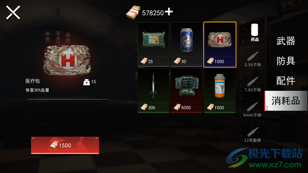4、医疗包:恢复30%血量,效果显著,必带物资之一,一般携带3-5个。