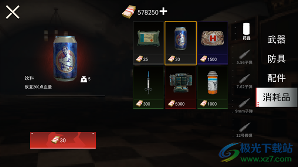 5、饮料:恢复200点血量,使用时间快,恢复效果一般,一般携带5-7个。