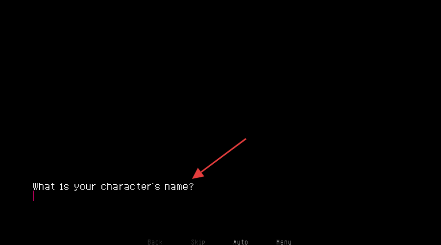 2、看到“Whatisourcharacter’sname?”提示后,输入角色名字,开启剧情体验。