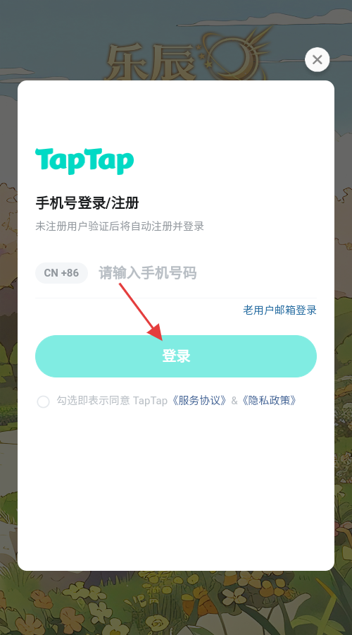 3、在【TapTap手机号登录/注册】界面,输入手机号码,勾选同意协议后,点击【登录】完成注册登录流程。