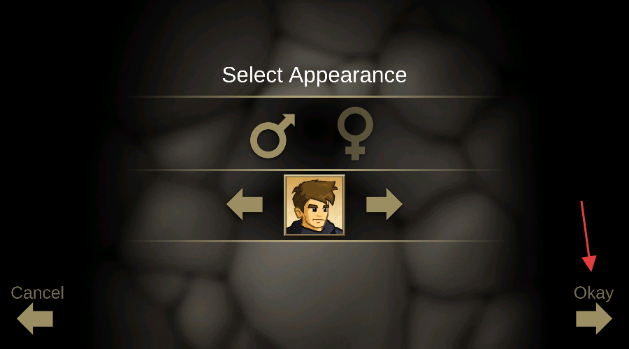 2、在选择角色外观界面,选定性别和外貌后,点击【Okay】确认角色外观设置。