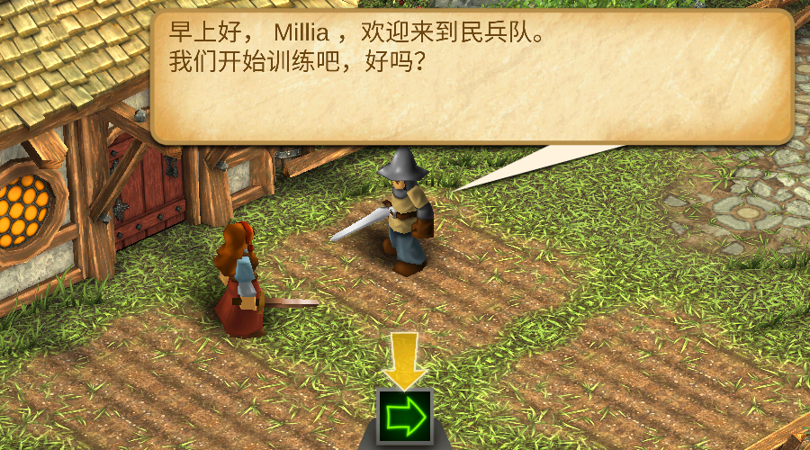 3、完成角色创建进入游戏,跟随对话指引,如“早上好,Millia,欢迎来到民兵团。我们开始训练吧,好吗?”,开启游戏训练等新手任务。