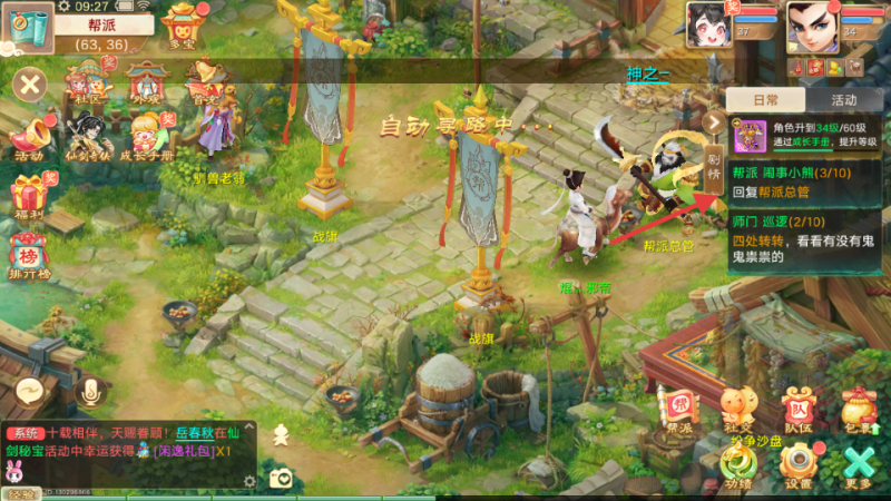 2、在任务栏可查看【帮派任务】进度,前往指定地点,完成任务。