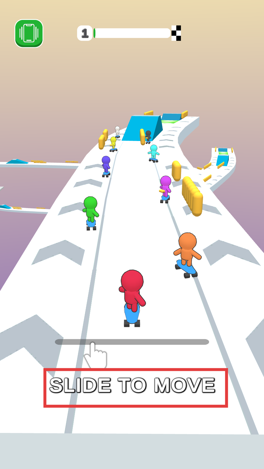 1、滑动屏幕控制角色移动,避开障碍物,提升分数和排名。