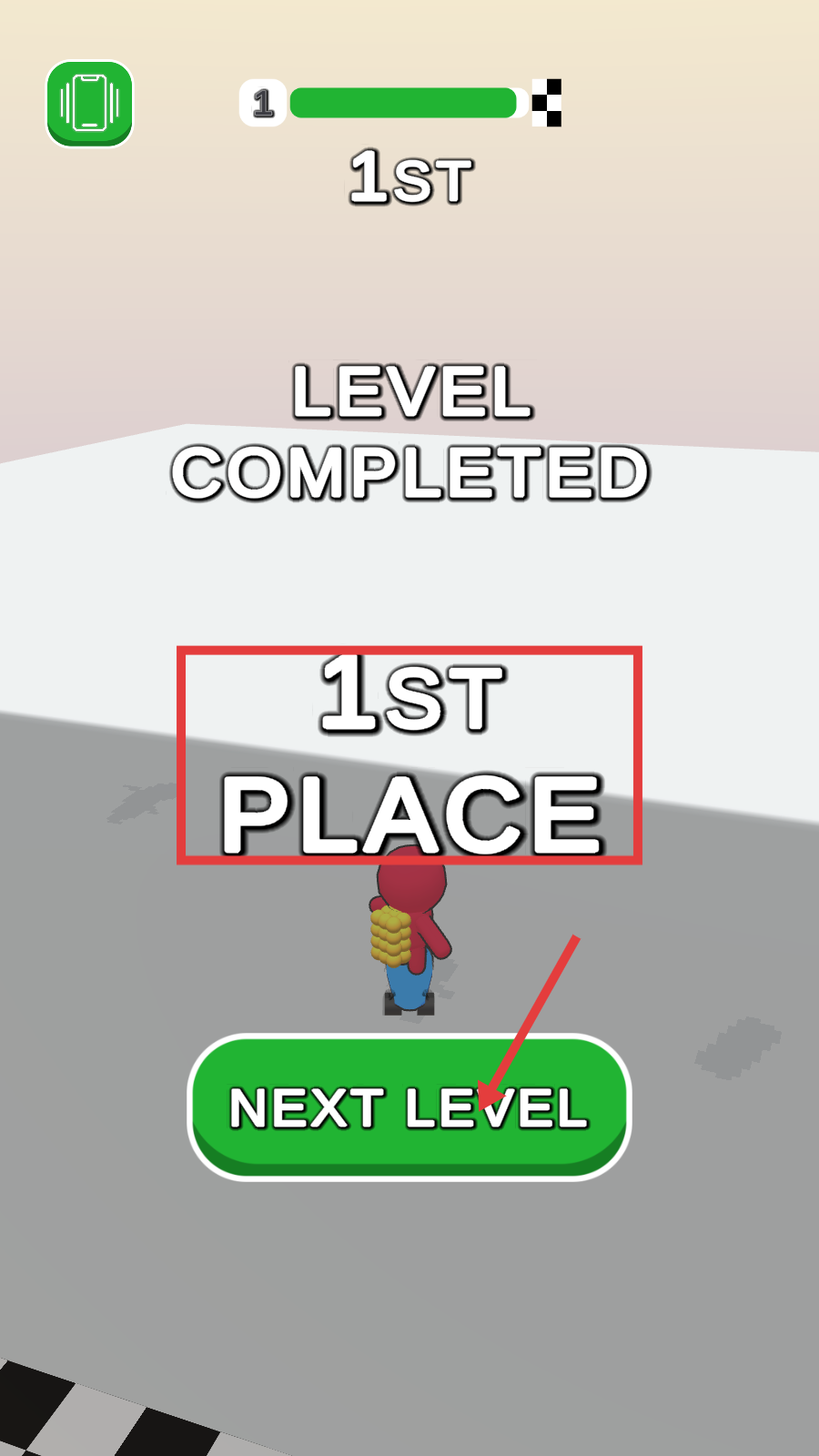 4、成功通关后,点击【NEXTLEVEL】继续下一关,积累经验,提升滑板技巧。