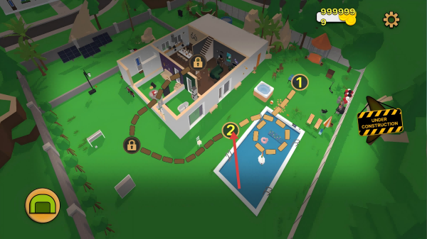 2、场景互动设计:客厅沙发书架构成天然屏障,花园喷泉提供隐蔽路径,环境要素深度融入作战决策增强真实代入感。
