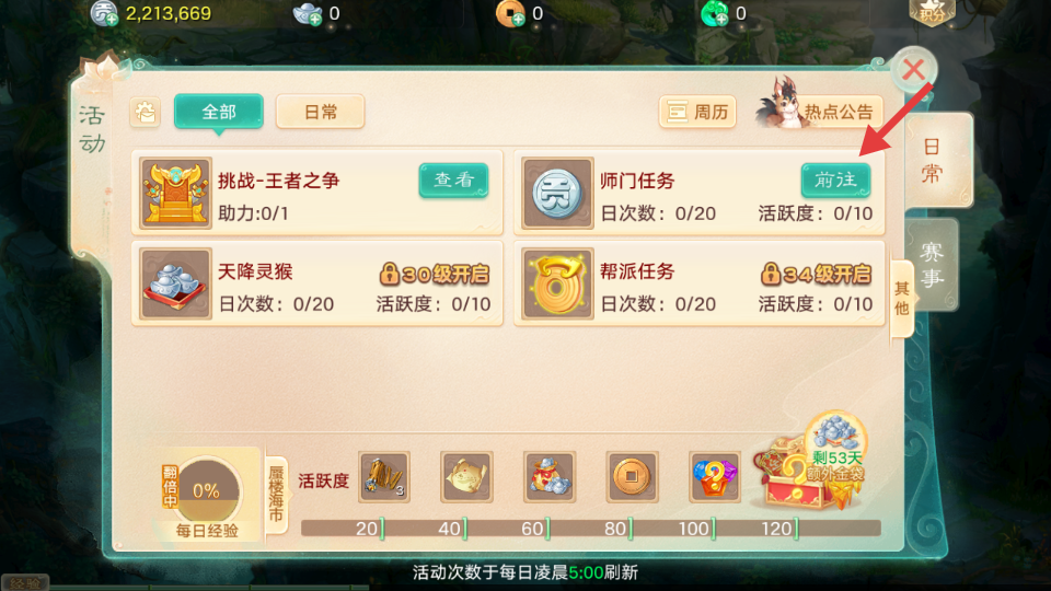 其他升级任务:帮派任务、大雁塔攻略、东君任务、竞技场、五环任务、大理寺答题。左边的这6个小编不一一介绍了(大话西游手游快速升级攻略 日常任务紧急程度)做完即可!!