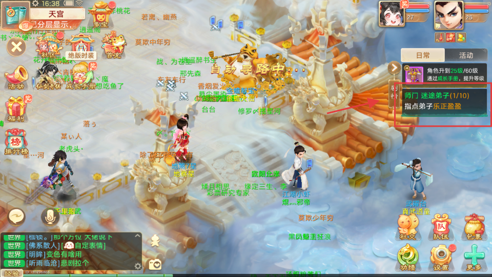 4、根据任务提示自动寻路,完成师门任务。