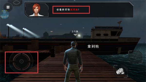3、进入关卡后,根据提示【你最好尽快逃跑!】,操控左侧轮盘移动角色,前往【拿到枪】的目标点。