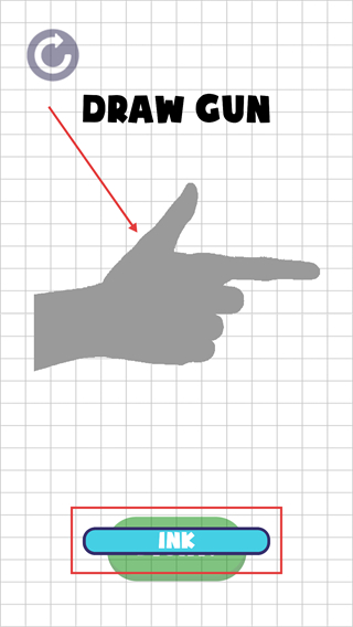 1、根据【DRAW-GUN】提示,点击下方【INK】按钮获取墨水,随后在手部区域绘制枪支的轮廓。