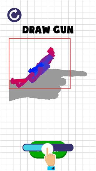 2、用墨水在手部区域绘制出枪支形状,完成后下方进度条会填充,确认绘制的枪支样式。
