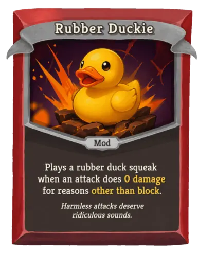 《杀戮尖塔2》橡胶鸭子MOD,这个模组是当攻击判定为0伤害时,会发出橡胶鸭吱吱声,但普通格挡攻击不会触发。喜欢的玩家快来diab暗黑下载吧!