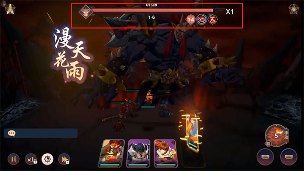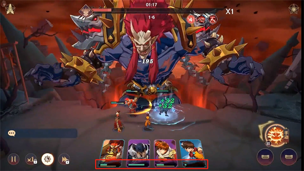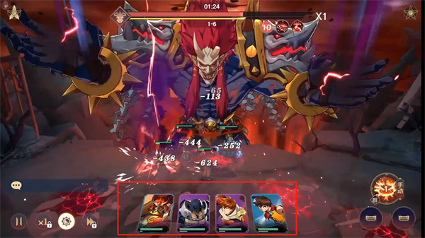 1、在这里可以看到自己上阵的角色英雄,并根据每个人不同的技能进行合理策略战斗对决;