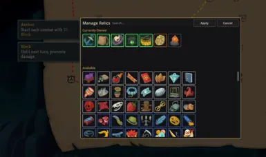 1、游戏界面右上角出现两个新按钮,点击任何拥有的遗物会打开一个小型检查/移除菜单。