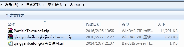 第二步:打开腾讯游戏——英雄联盟——game文件夹并将下载的皮肤包复制进去