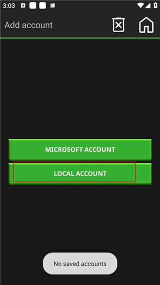 8、当我们点击启动游戏时会进入此界面,这是告诉我们没有账户,我们点击“LOCAL ACCOUNT”创建账户;