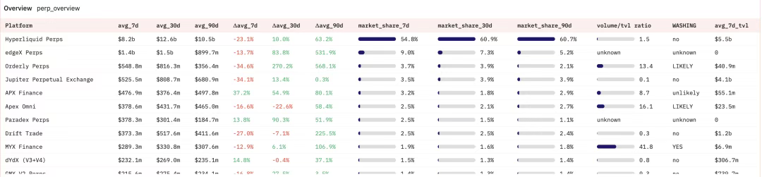 · 佔去中心化永续合约总交易量的 70%,日交易量佔比达币安的 9.9%;