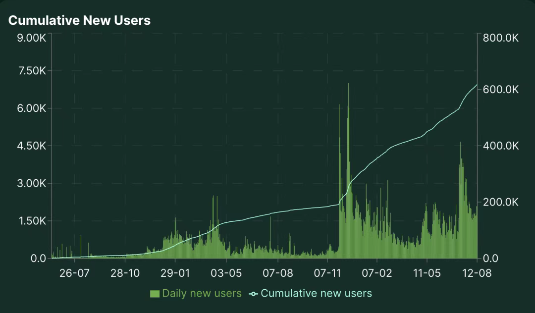 重度用户凭藉新获得的财富继续活跃使用 — — 费用收入用于回购代币 — — 强化了产品和市场影响力 — — Hyperliquid 吸引了更多用户和交易量。
