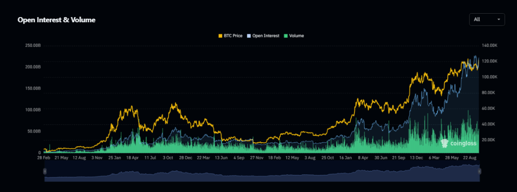 比特币突破123,000美元 未平仓合约激增预示后市将现更大波动